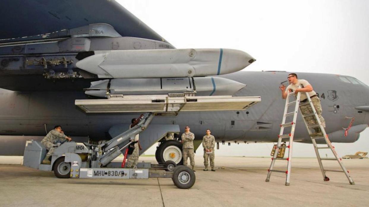 (B52挂弹)因此美国实际上只能选择使用空射版的反舰导弹,这实际上和美国在现有导弹基础上研发AGM-158C导弹,而非研发新一代导弹一样,都是没有选择的选择。